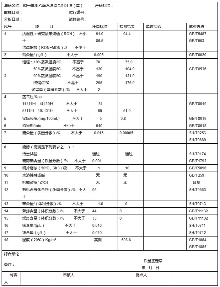 高辛烷值汽油組分檢測(cè)報(bào)告94.4